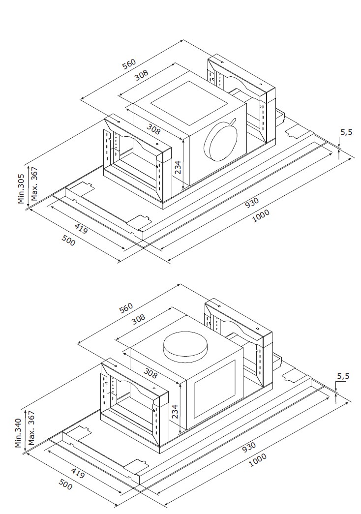 - Possibility of extraction at all sides and upwards