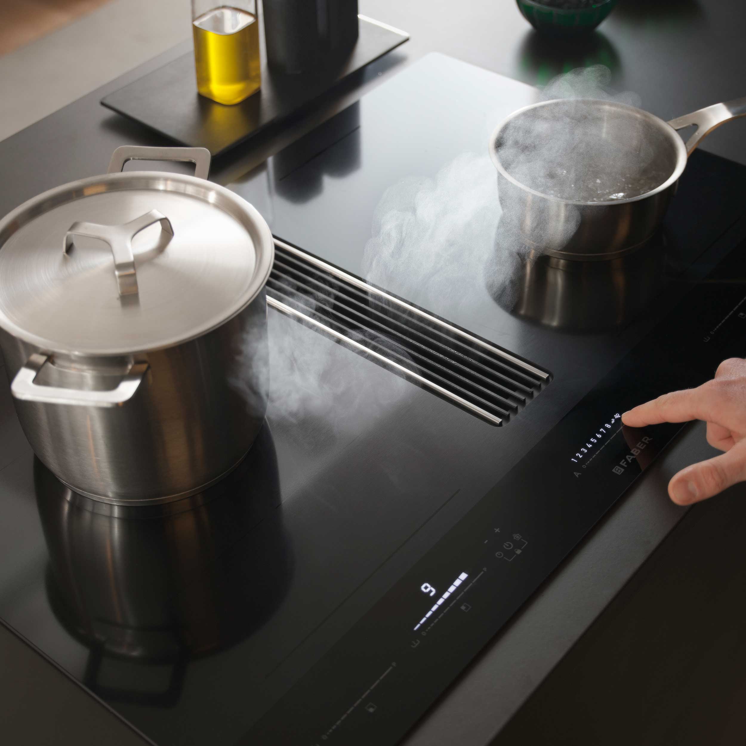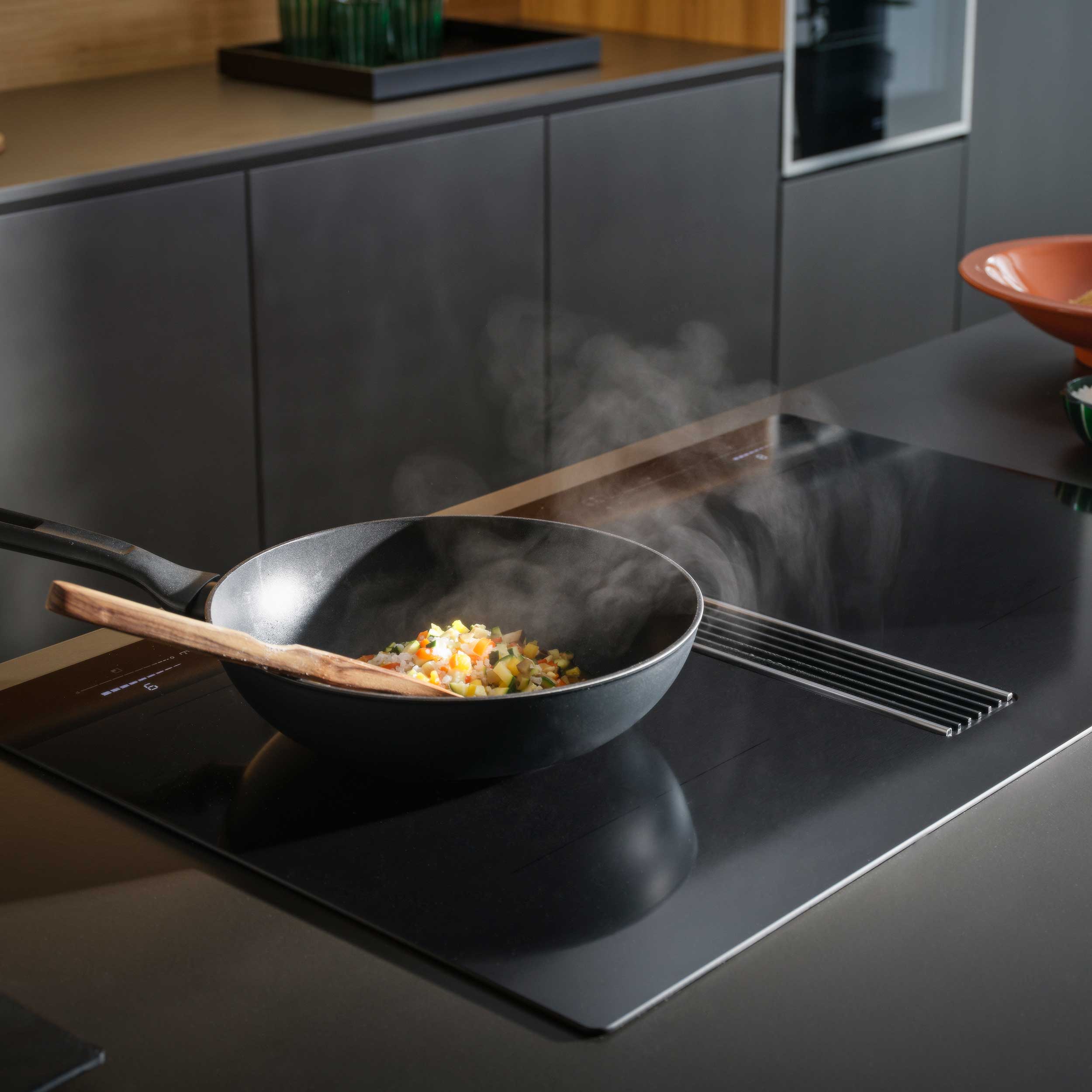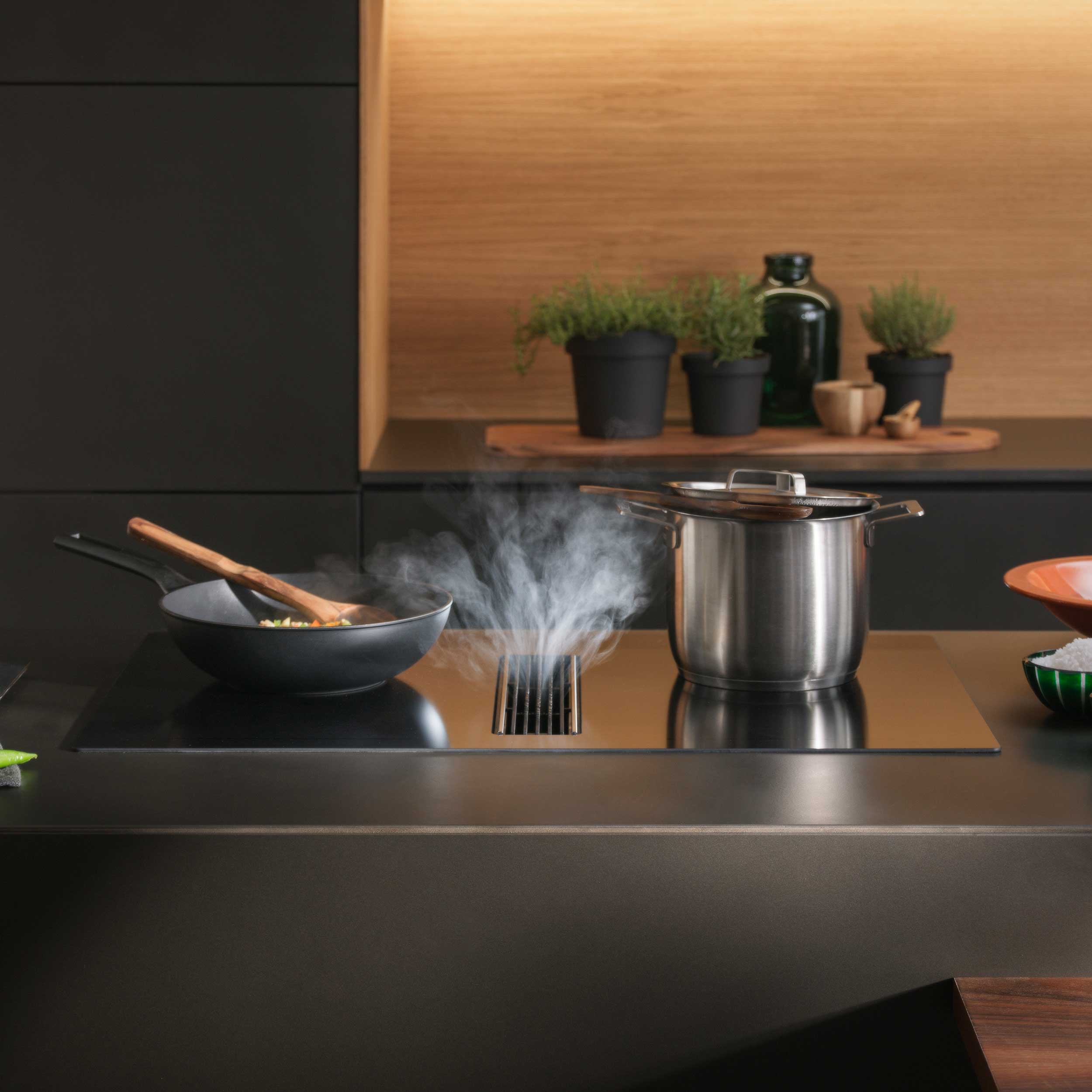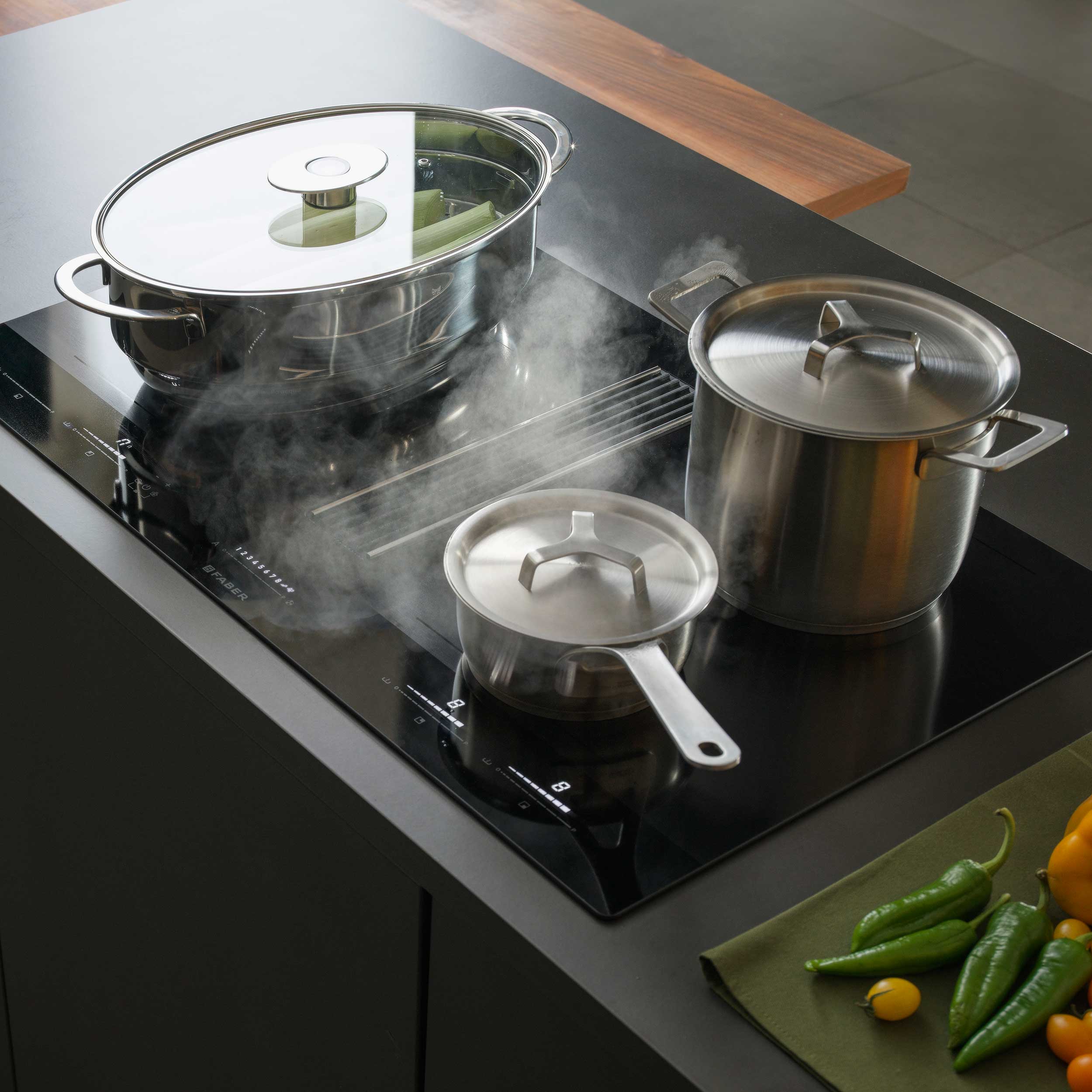 Autoaspiration sensor technology With Autoaspiration function the integrated cooker hood receives information from the hob and automatically adjusts the suction power.