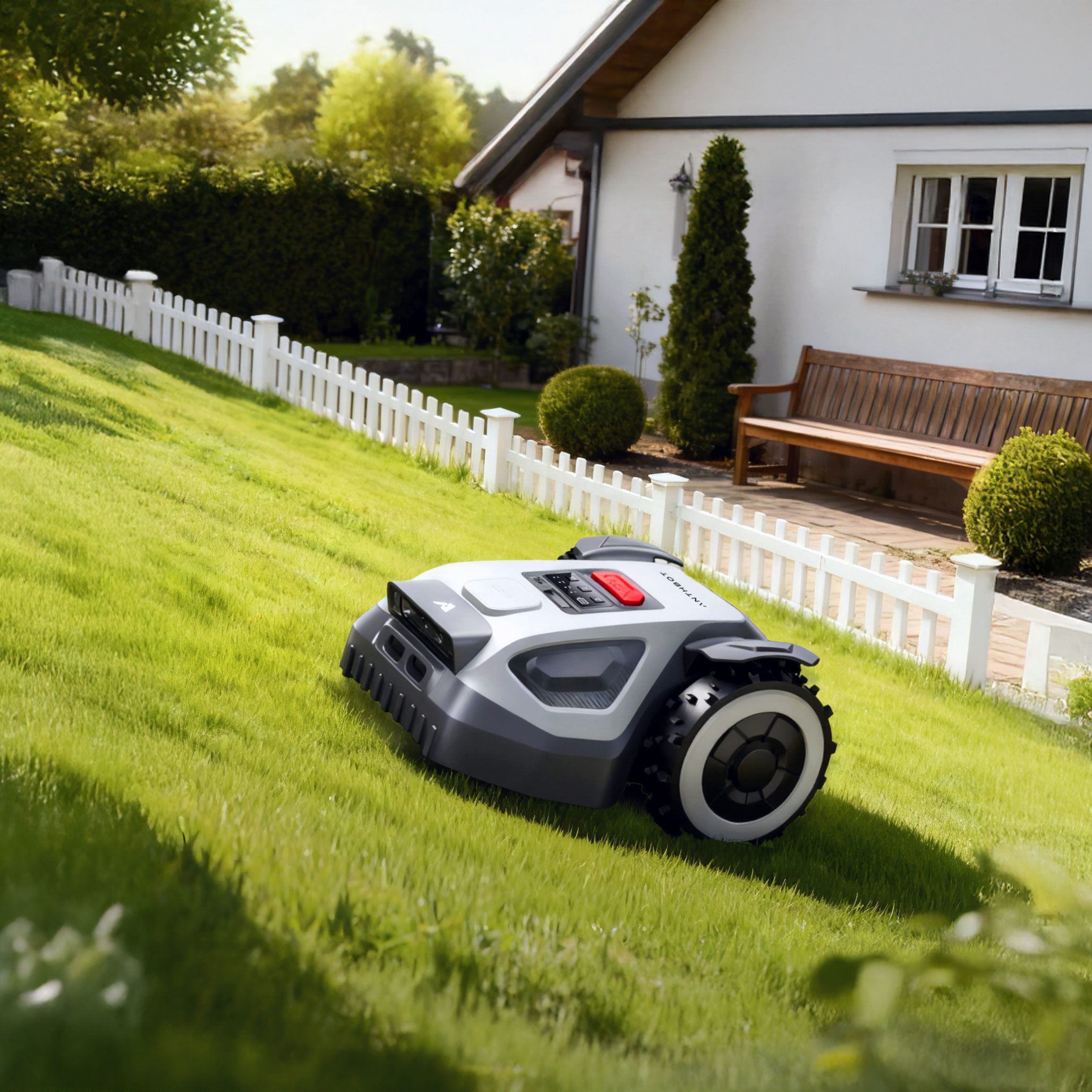 Navigation: 360° LiDAR + Dual Vision. Designed for enclosed gardens. Wire-free Plug & Play.