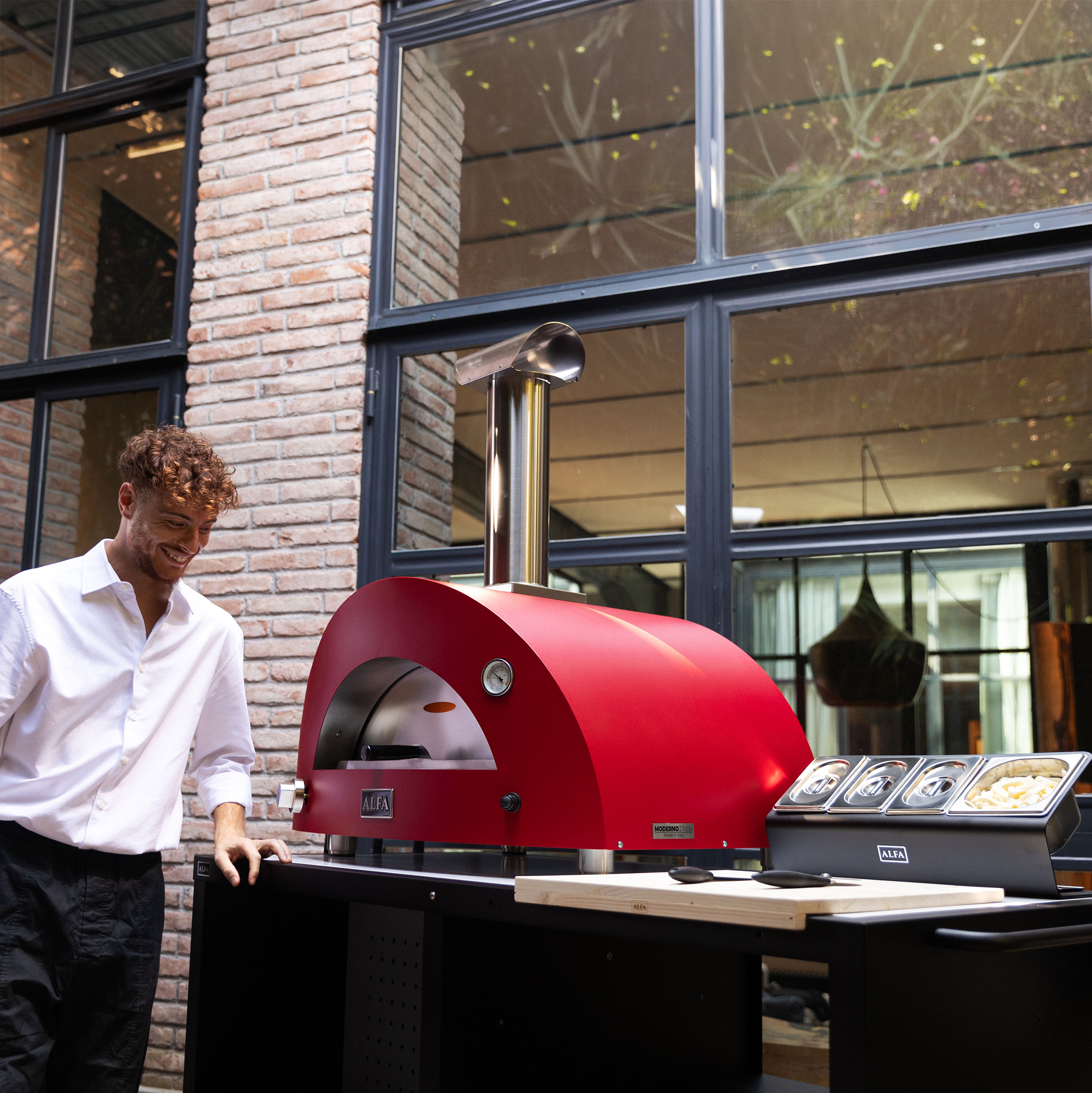 Moderno Line 2 Pizza is Alfa’s outdoor pizza oven, available in gas and wood versions, and designed for baking pizza and more.