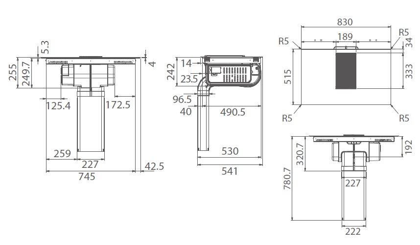 830 x 515 x 250
