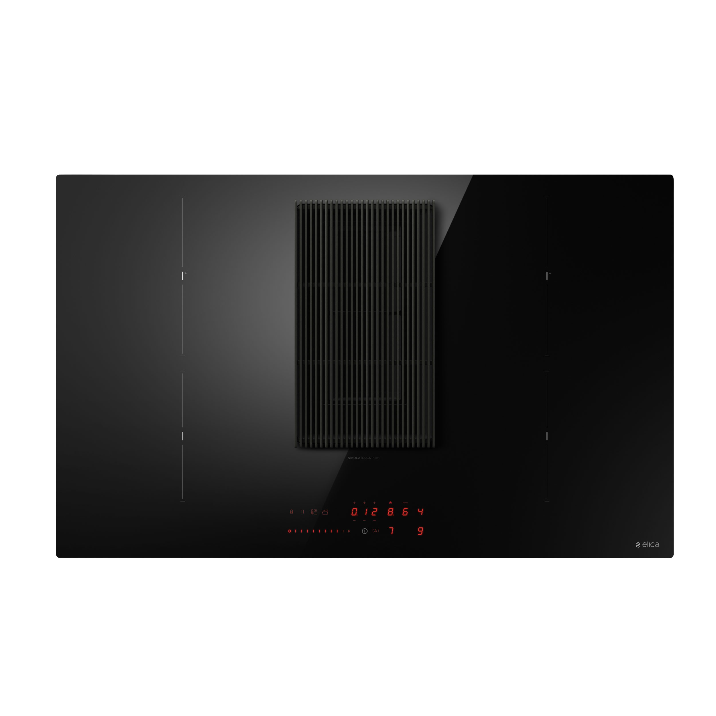 83 cm hob with integrated extractor. Performance 5.1 m/s and low noise level 63 dB(A) at maximum power.