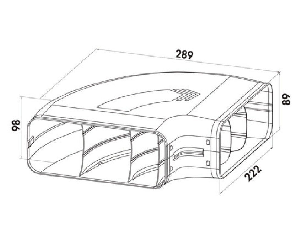 Horizontal 90° elbow in compact form – part of the tool-free Prime flow® duct system.