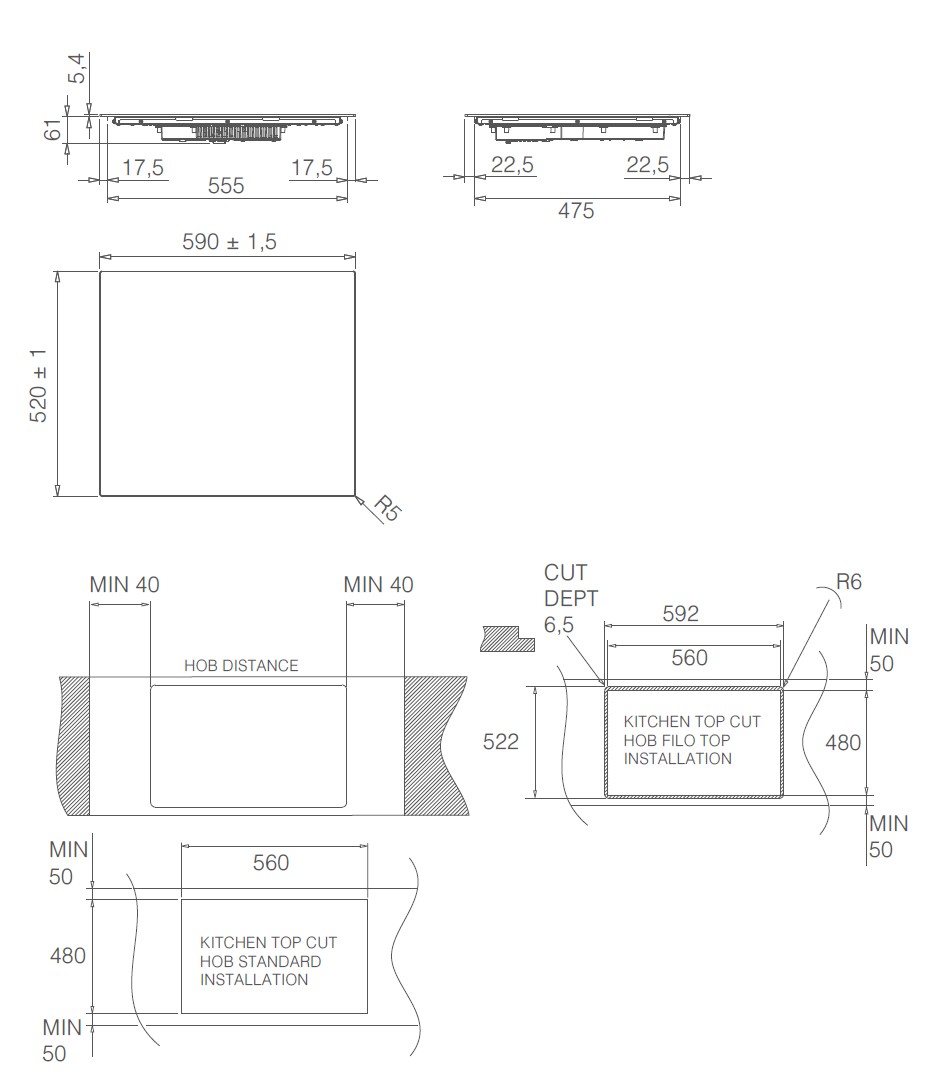 - Built-in (WxDxH): 560 x 480 x 66,4 mm