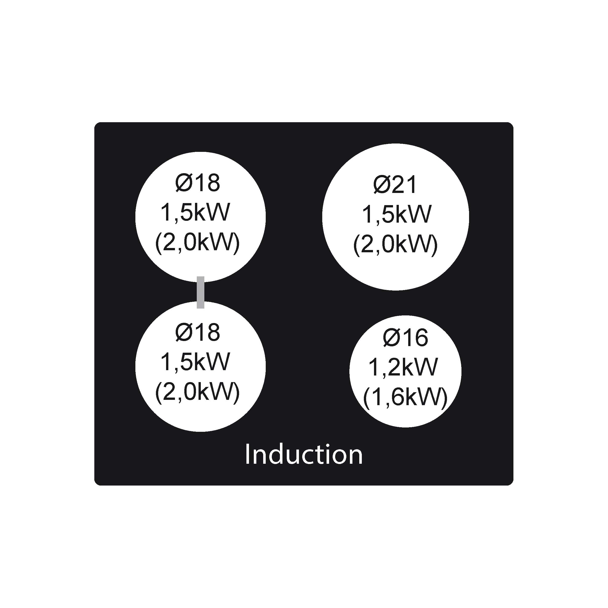 Induction hob - 4 zones - Black - Width 590 mm