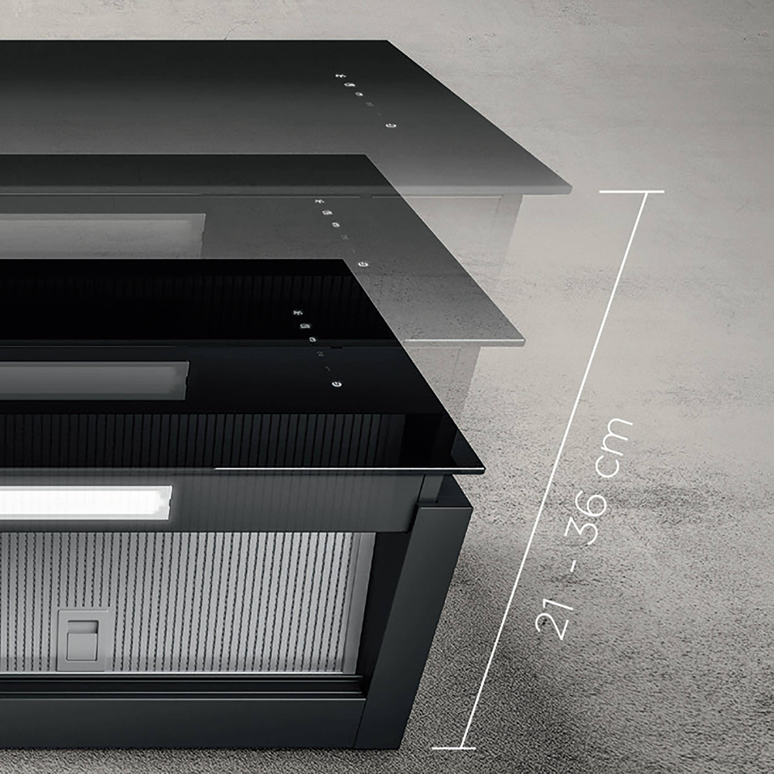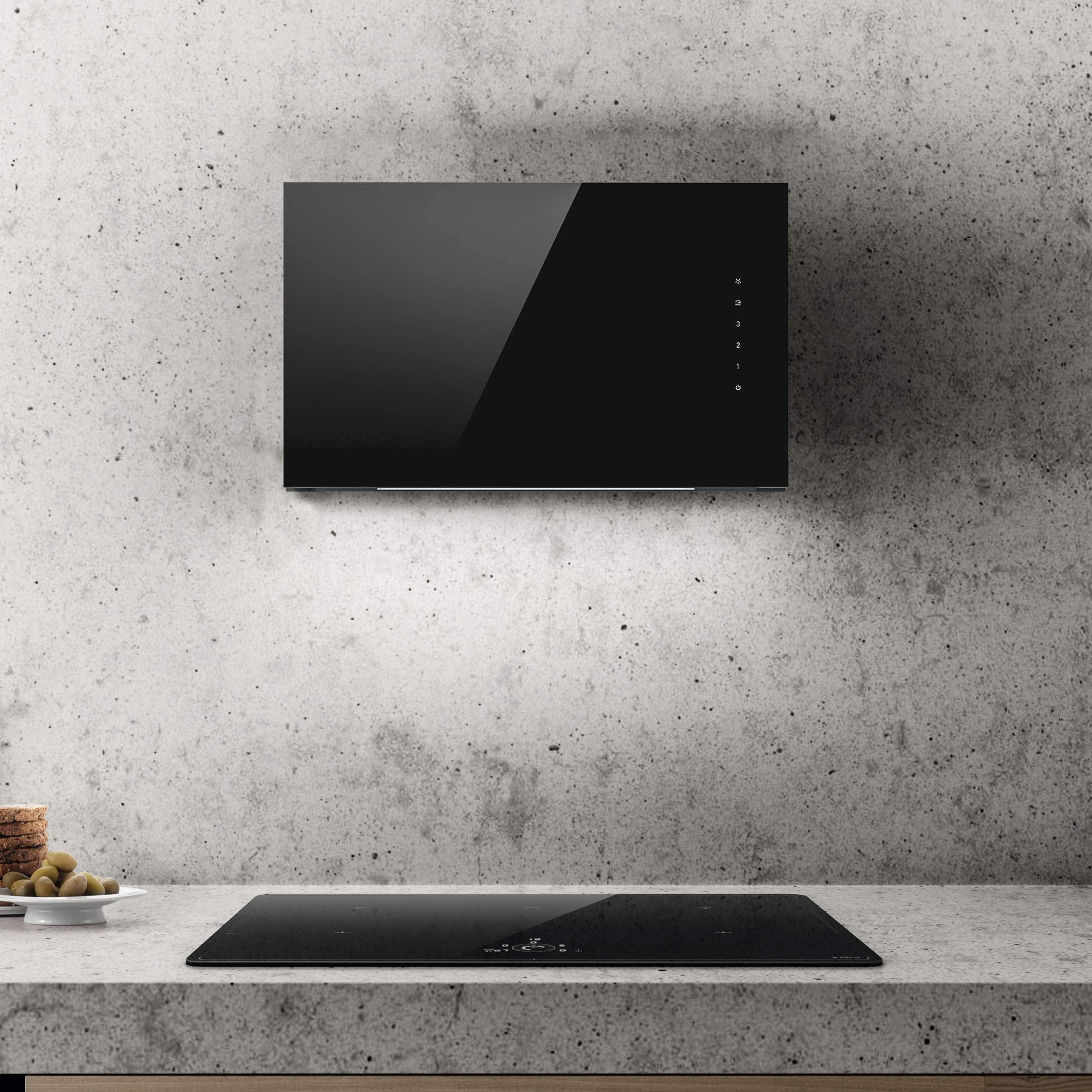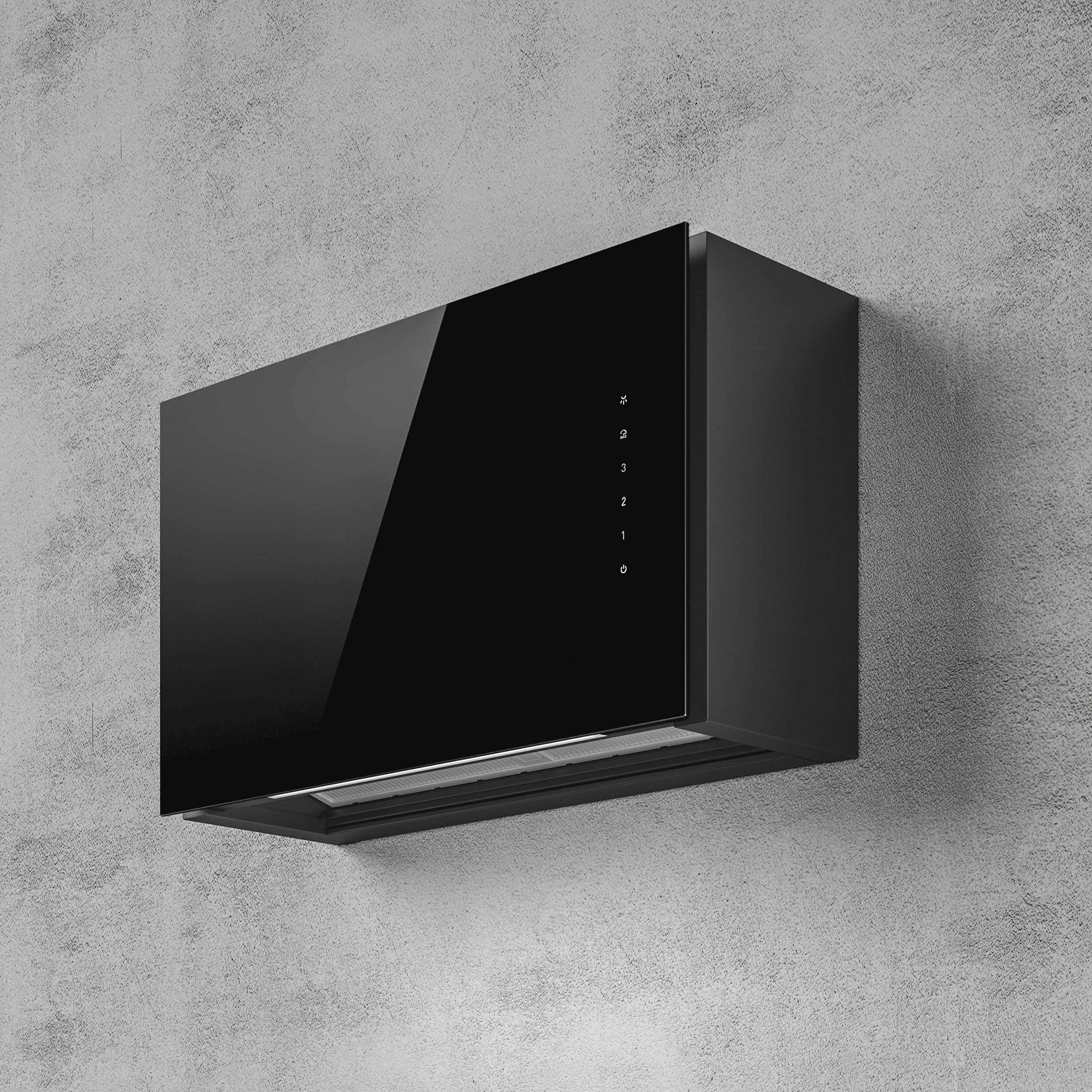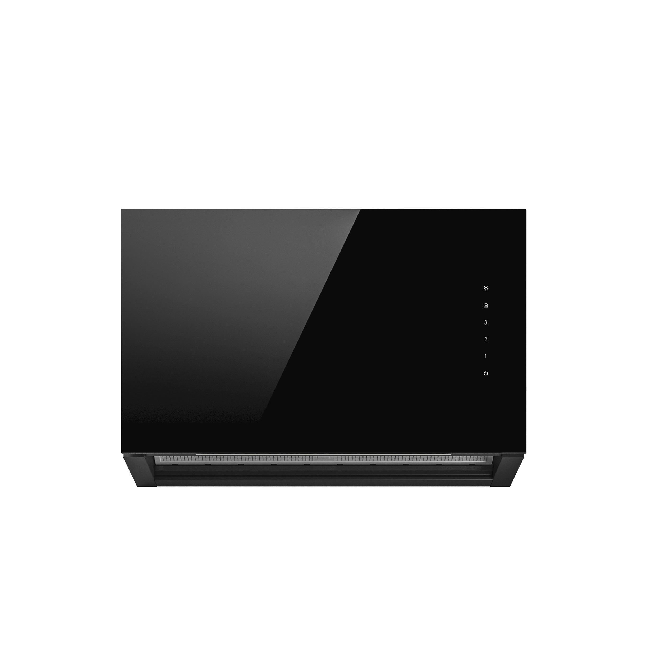 Award-winning wall-mounted hood in black glass with Wi-Fi and smart control