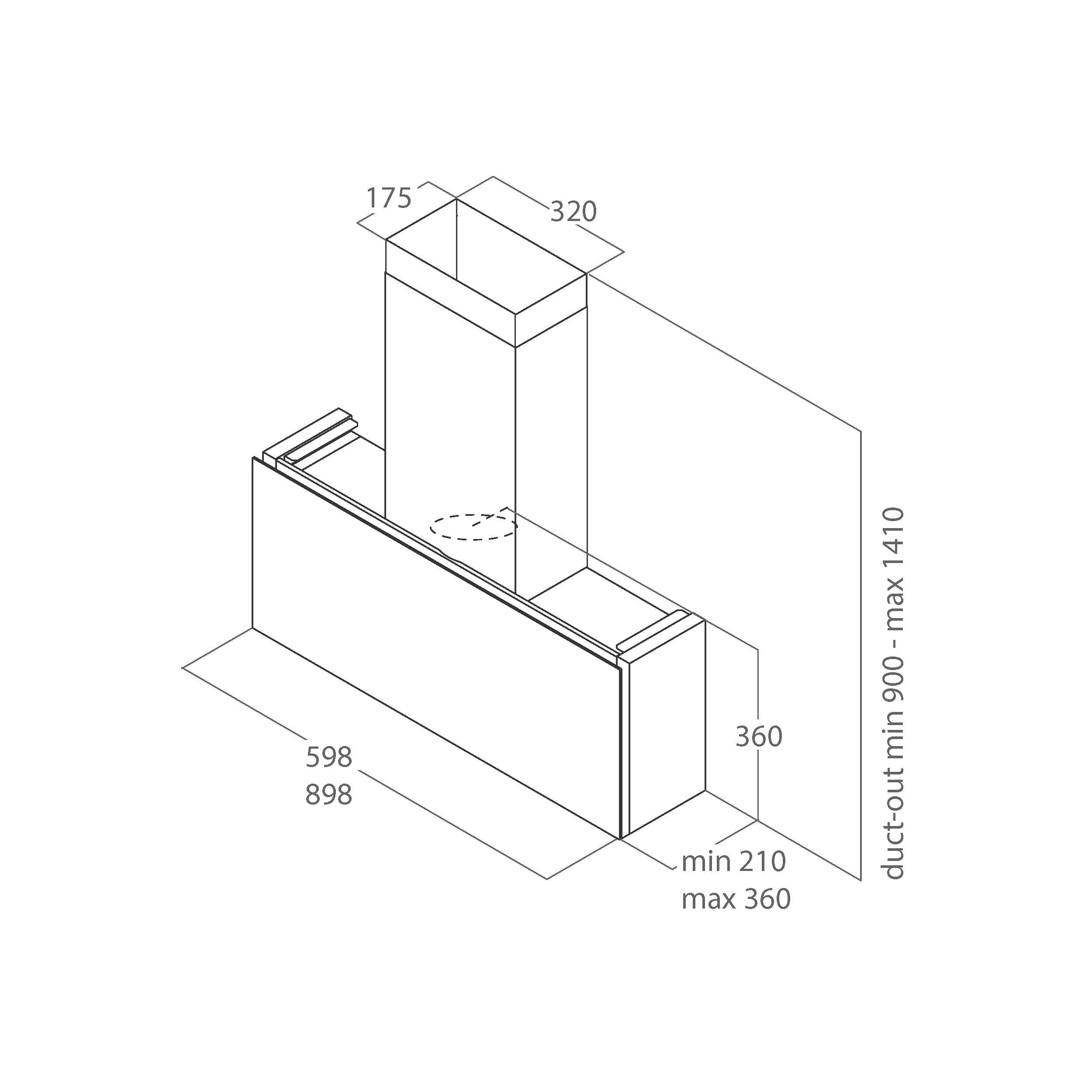 - Product (WxDxH) 898 x 210 - 360 x 360 mm