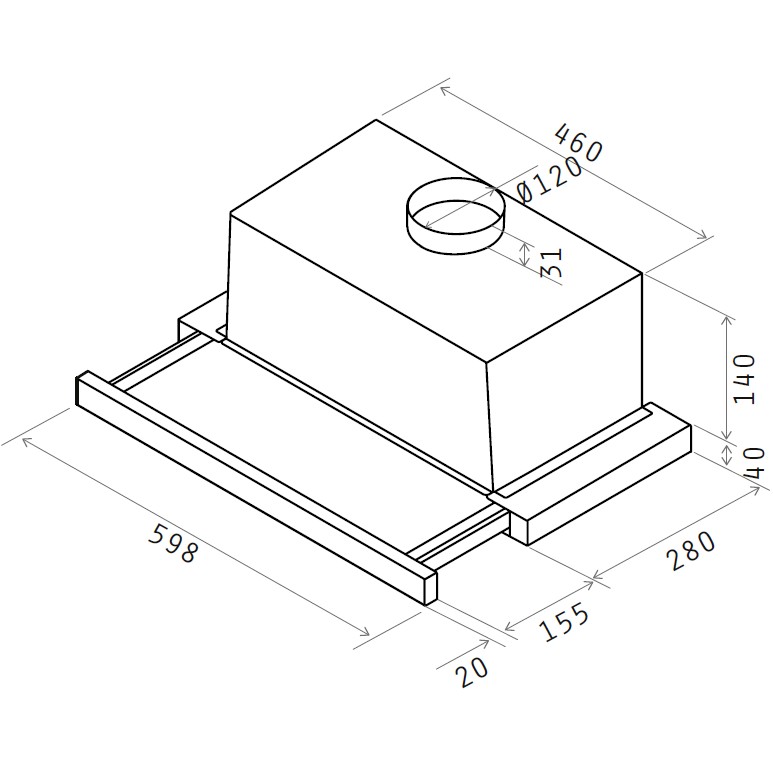 Telescopic cooker hood - With built-in motor - Steel - Width 600 mm