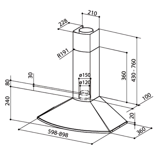 - Classic stylish wall-mounted hood