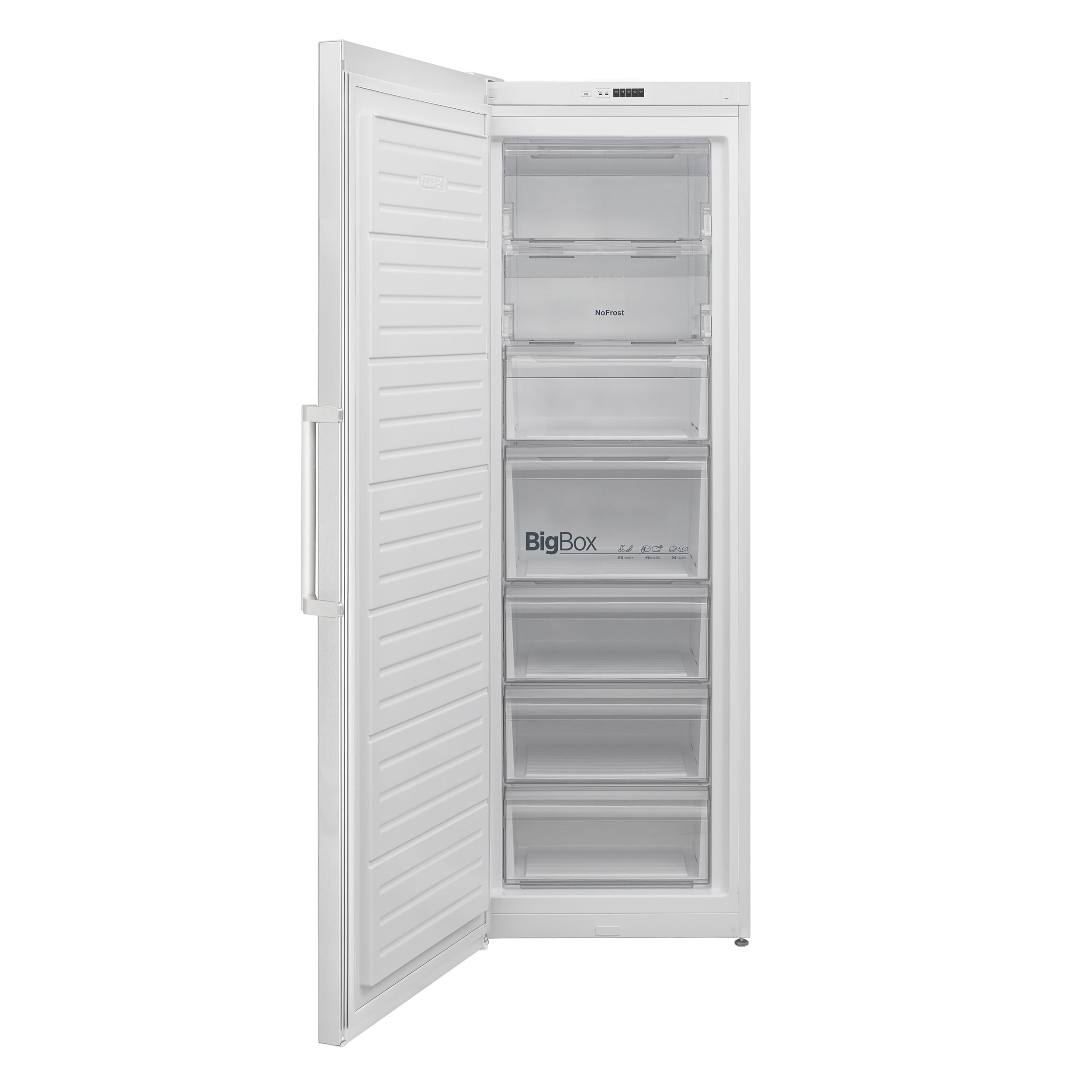This 186 cm freezer is well suited for modern households. NoFrost prevents ice build-up, while Super-freeze ensures fast freezing. Easy-open handle and spacious drawers, including a BigBox.