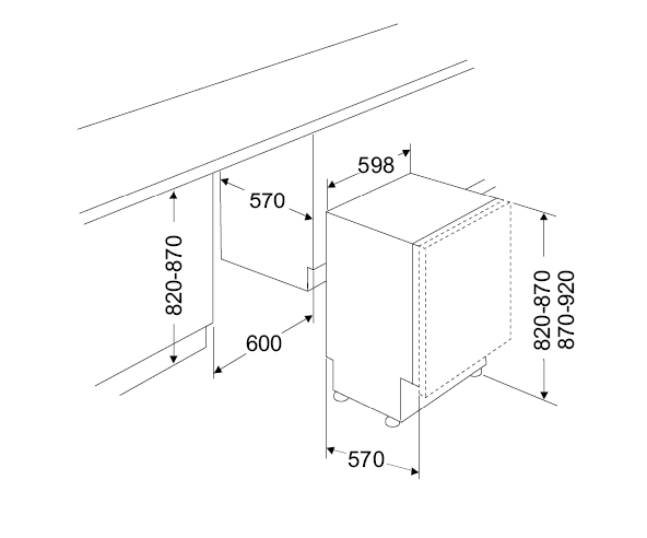 - Product (WxDxH) 598 x 570 x 820 - 870 / 870 - 920 mm